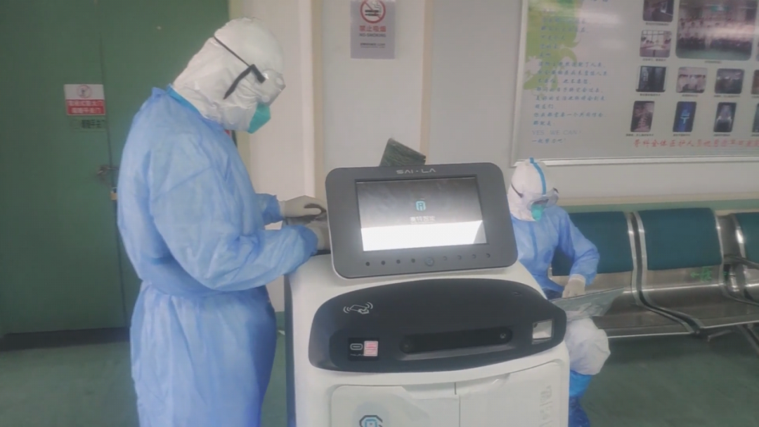 早在2月23日,袁俊超就奔赴武汉,进入医院对“赛拉”进行调试。第一站武汉市第九医院,是武汉市中心城区发热患者定点诊疗医院,这里收治了大批确诊患者,其中不少是重症,甚至是危重症患者。